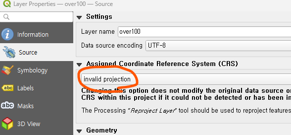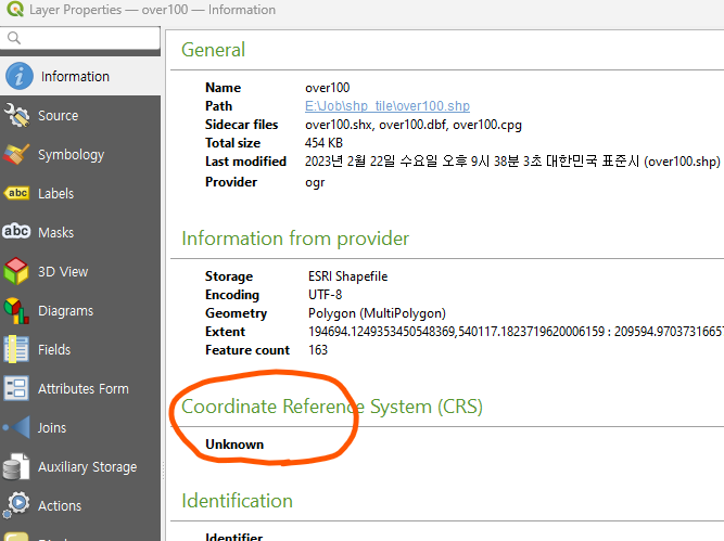 Information에서 보시면, 아래처럼 현재 좌표시스템을 알수 없다고 뜨면, 좌표를 설정해 줘야합니다.