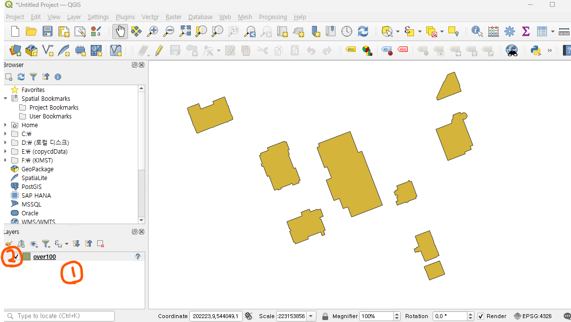 우선 원하는 데이터를 아래 그림의 Layers 창에 떨굽니다.
