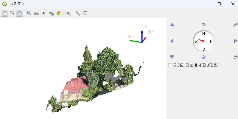 Qgis 탐색기에서 Scene에 오른쪽 마우스로 추가한 모습 - 3dtiles 파일들을 웹서버 밑에 복사함.