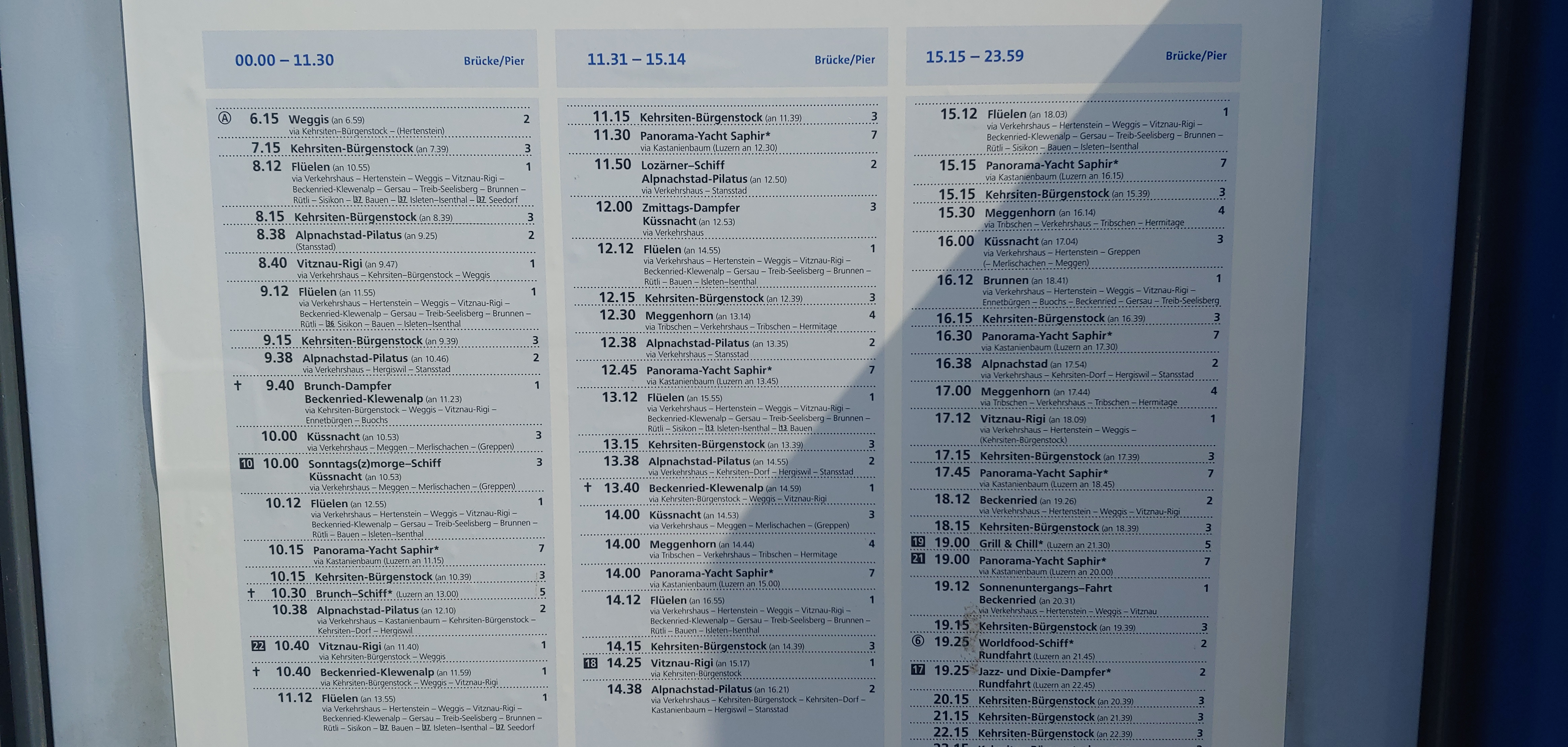 유람선 선착장에 있던 시간표